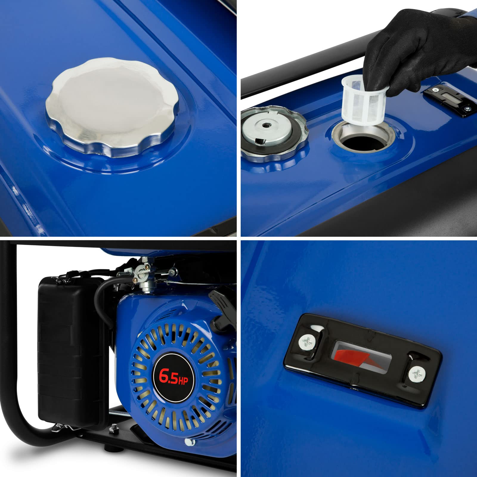 - LEISTUNGSSTARK: Das EBERTH Notstromaggregat wird durch einen 6,5 PS / 4,8 kW starken, luftgekühlten, 1 Zylinder 4-Takt Benzinmotor mit Ölmangelsicherung und 196 ccm Hubraum angetrieben, immer startbereit und lässt sich mit wenig Kraftaufwand per Seilzug starten